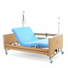 Медицинская кровать с ультрасовременным механизмом переворачивания, снабжённым таймером и позволяющим ночную смену положения больного без контроля ухаживающего лица, полноценным положением кардио-кресло, опускающим все ножные сегменты к полу и электроприводным санитарным оснащением, которое при определённой сохранности моторных функций пациента обеспечит ему максимальную автономность. без, в любом случае, действующей на нервы помощи ухаживающих лиц.